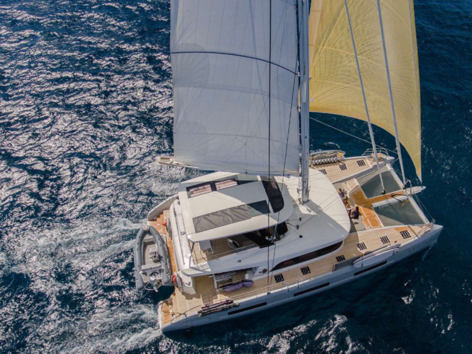 Reverie – a 2025 Lagoon Sixty5 catamaran – welcomes up to 8 guests across 4 elegant cabins, with space for 10 when needed. Her dedicated crew delivers top‑tier hospitality, while bright, open living areas, a sun‑soaked deck, and a host of water toys (foils, seabobs, paddle boards, snorkeling gear) ensure a blend of relaxation and adventure. Sleek design, modern sailing performance, and thoughtful onboard comforts make Reverie a standout choice for guests seeking both style and seamless service on the water.